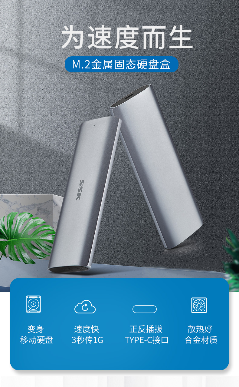 飚王HE-C323 M.2硬盘盒TYPE-C转M.2 SATA