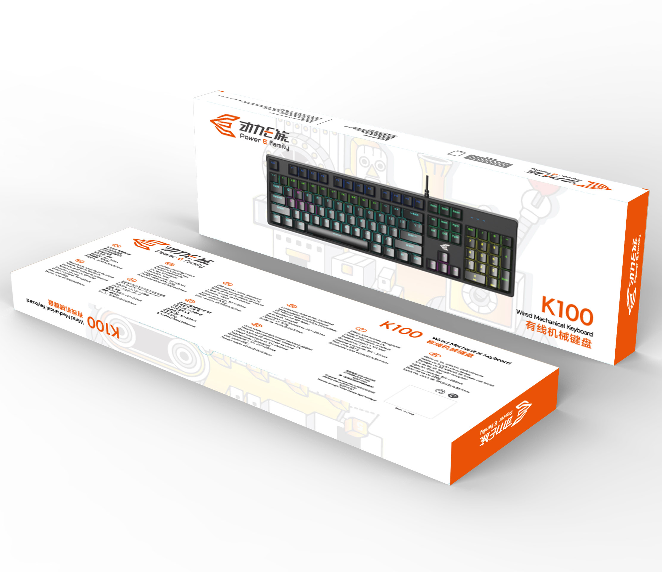 动力E族【K100】青轴彩光机械键盘