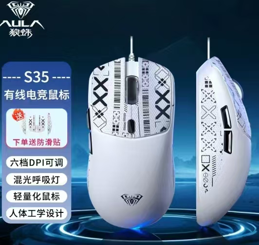 狼蛛S35 防滑游戏发光鼠标(白色)