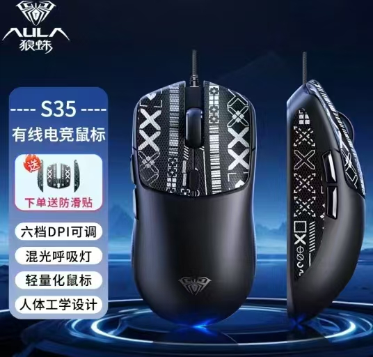 狼蛛S35 防滑游戏发光鼠标(黑色)