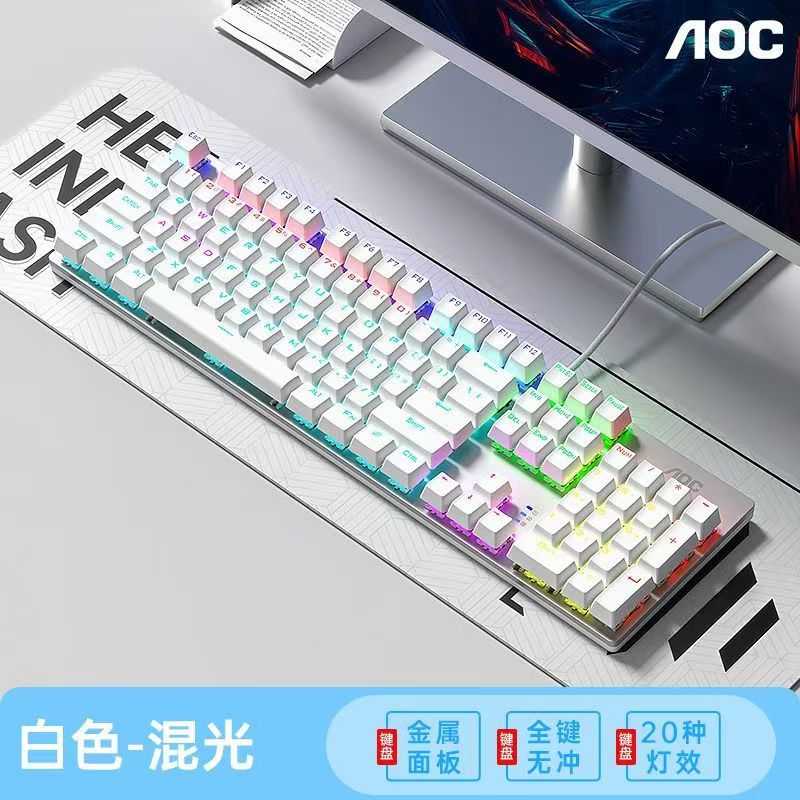 AOC【GK410白色】青轴金属机械键盘全键无冲