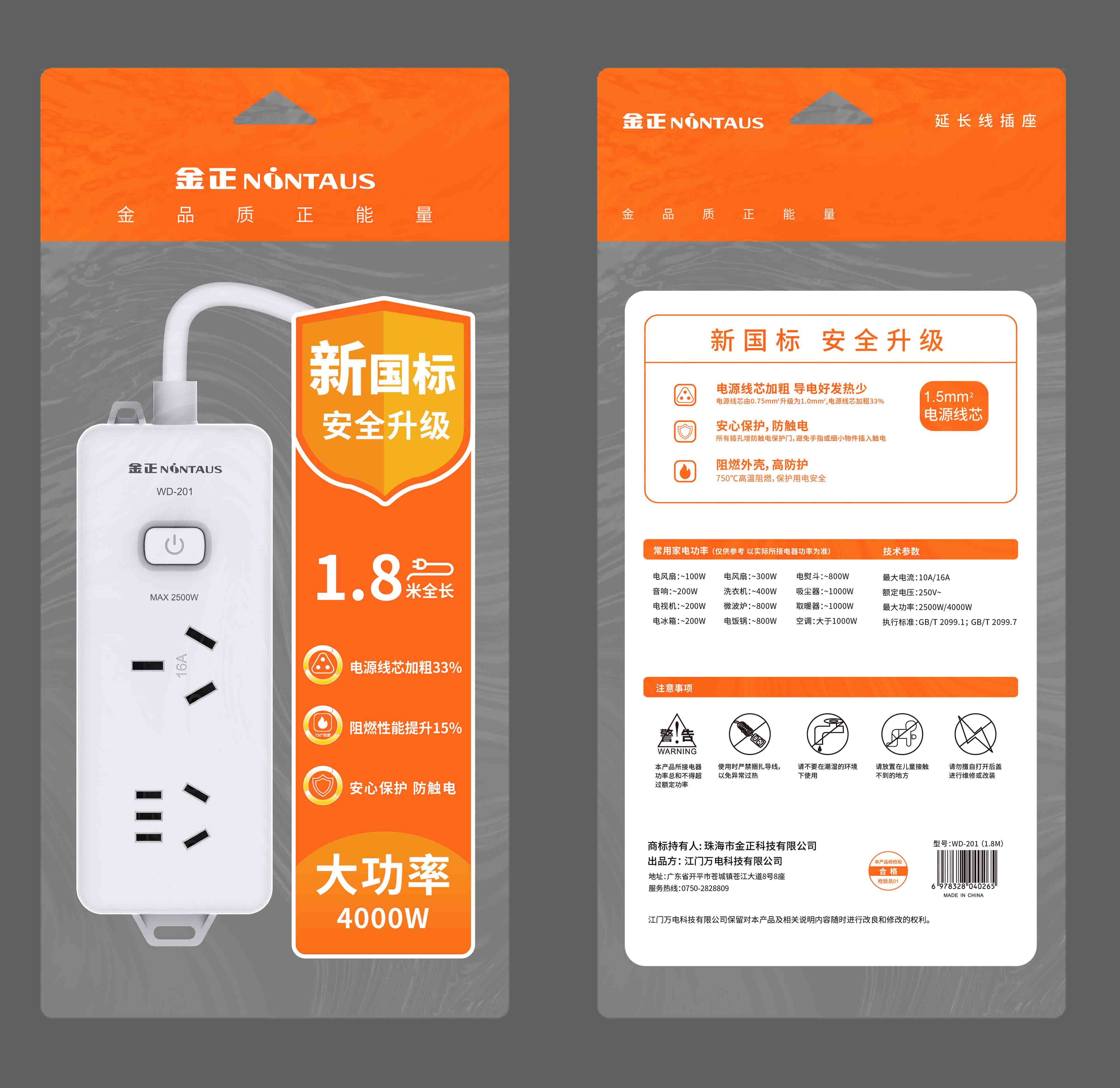 金正WD-201 二位插排 1.8米 此款1.5平方线