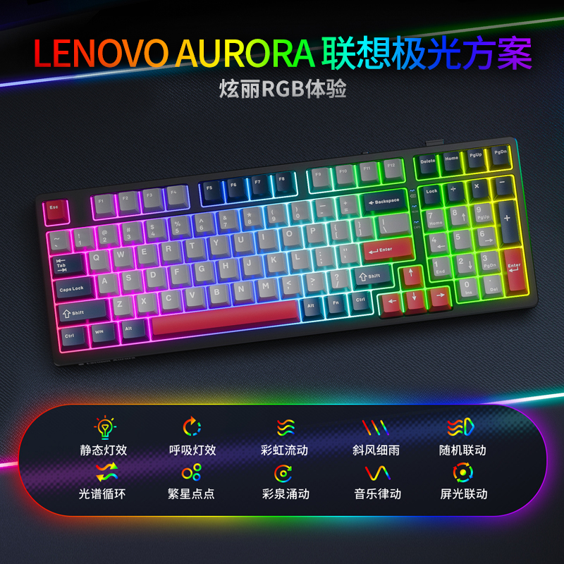 联想GK10三模版98 茶轴B款 彩光机械键盘 黑红