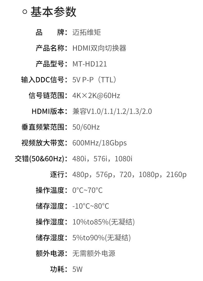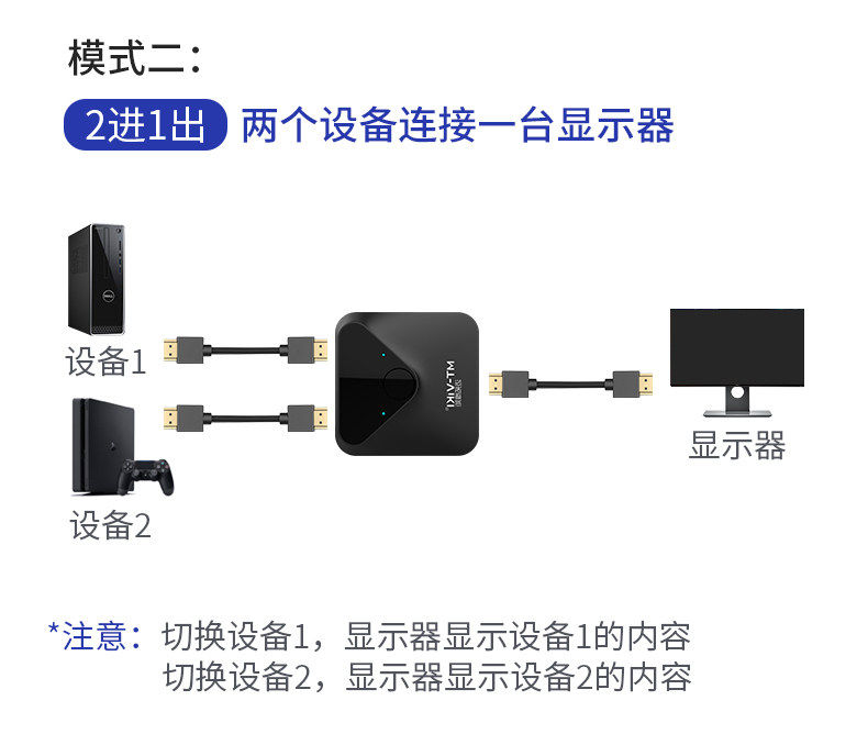 迈拓维矩 MT-HD121 HDMI切换器分配器双向切换2进1出/1进2出
