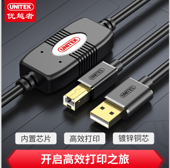 优越者U205A USB2.0信号放大打印线(10米)带芯片