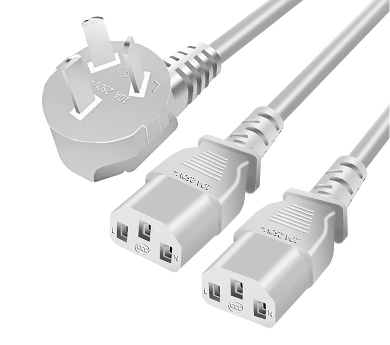 国标电源线无氧铜一分二1.8米(灰色)