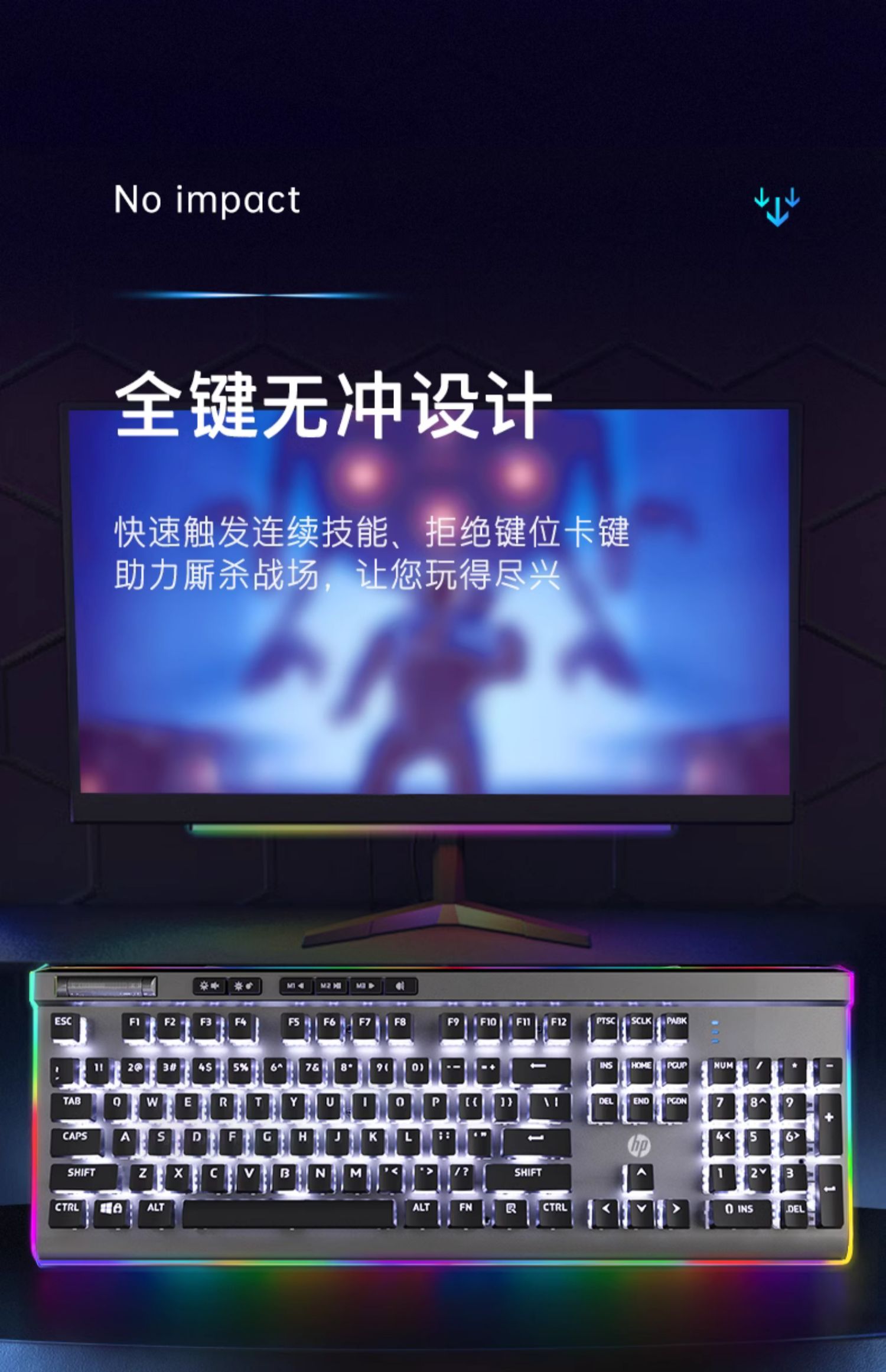 惠普GK520S黑色青轴 超薄豪华RGB机械键盘