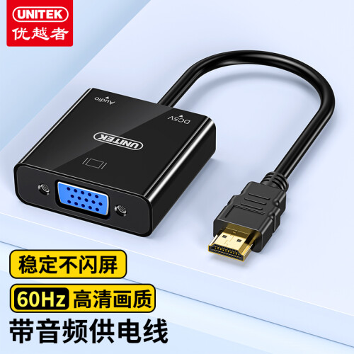 优越者V128BBK高清HDMI转VGA带音频带供电