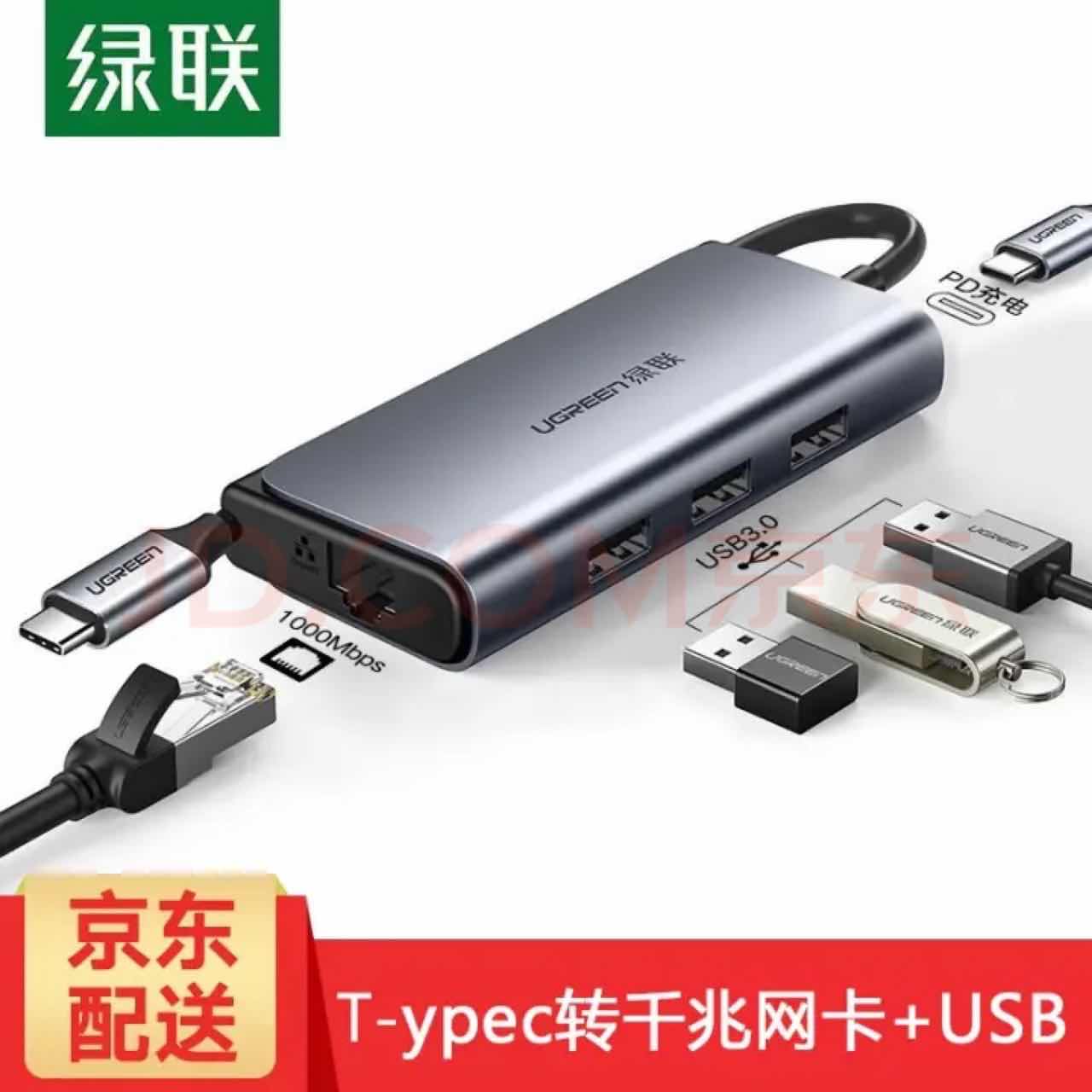 绿联 CM141Type-C 转千兆网卡+3口USB分线器+PD供电接口