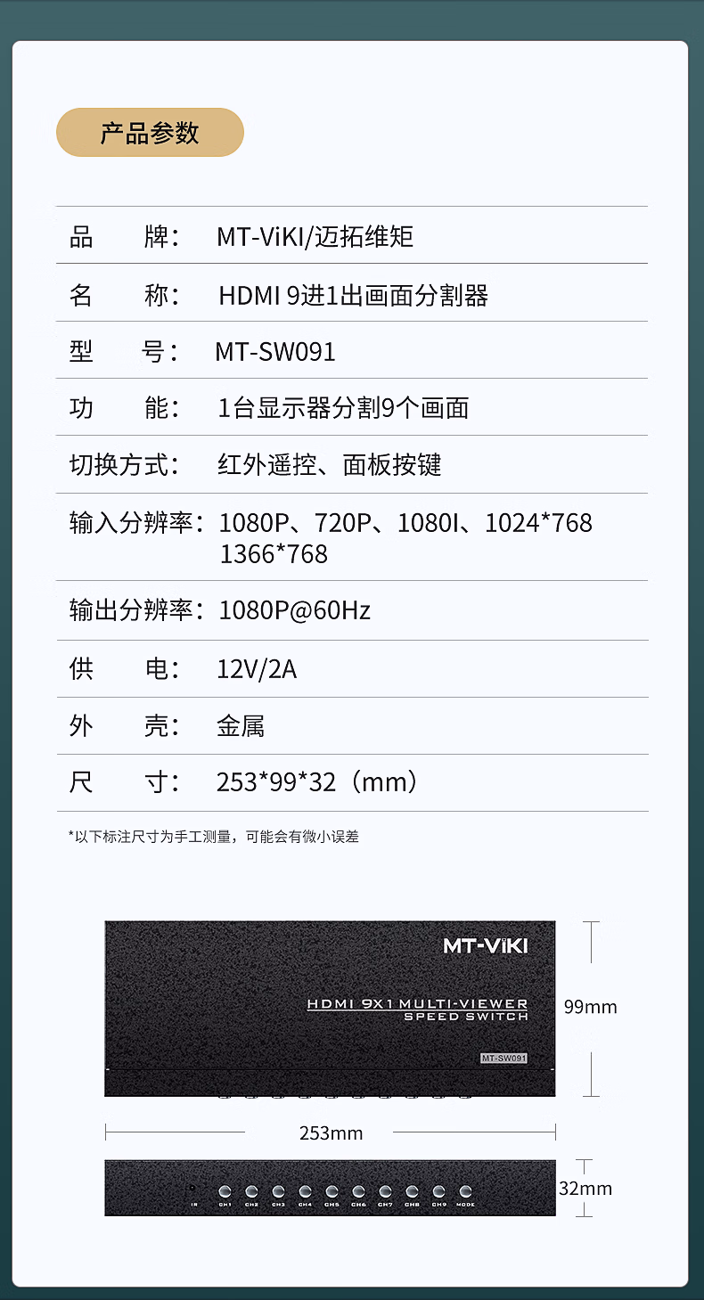 迈拓 HDMI分割器 九画面分屏器多进一出