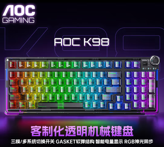 AOC【K98黑色】蓝牙三模客制化机械键盘