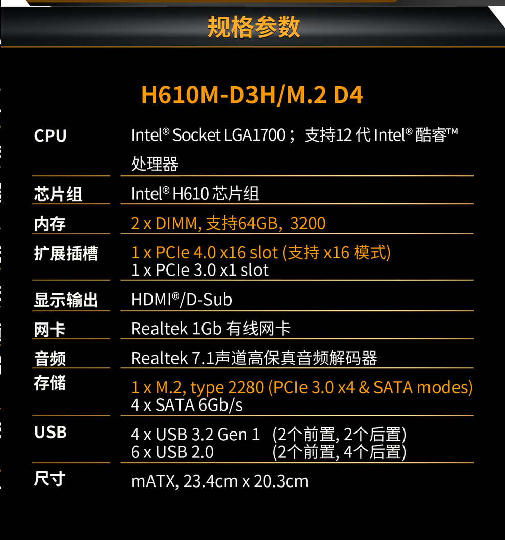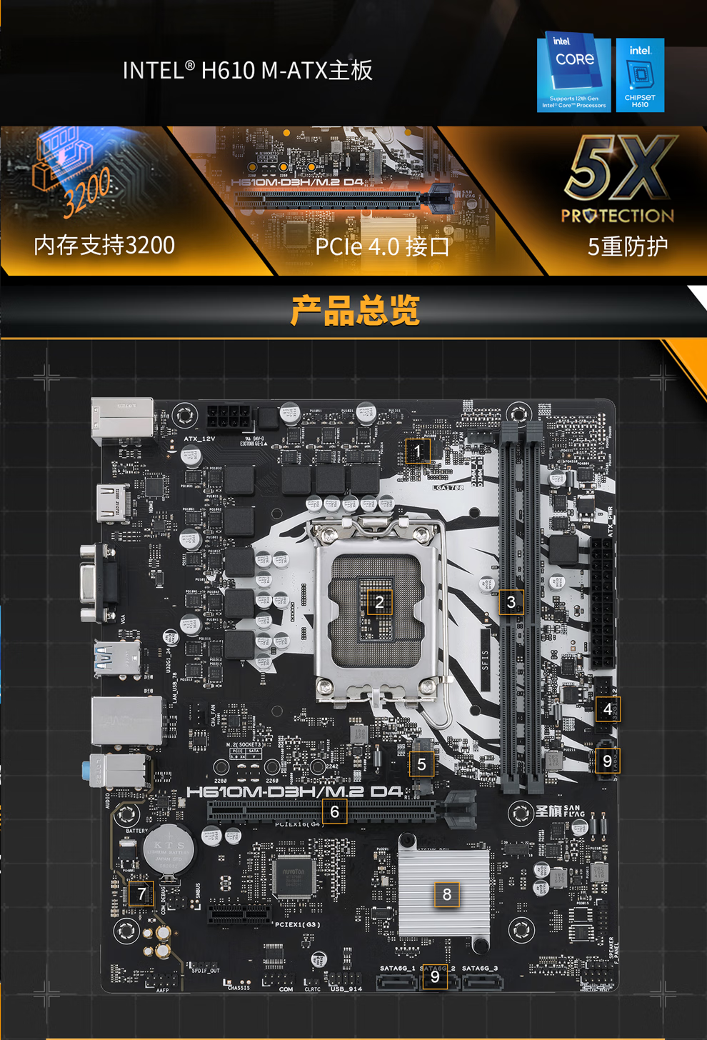 圣旗H610M-D3H/M.2 D4电脑台式机主板