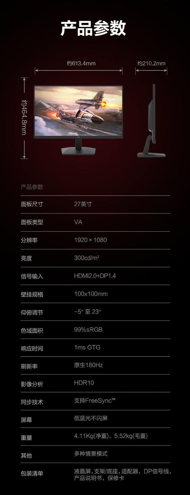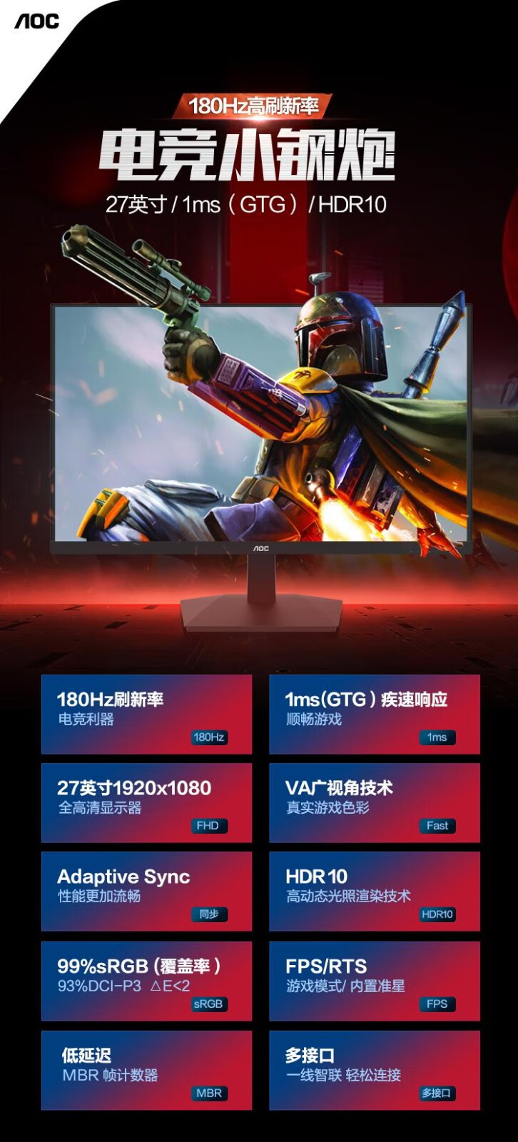 AOC 27G15N 27英寸直面180Hz电竞显示器