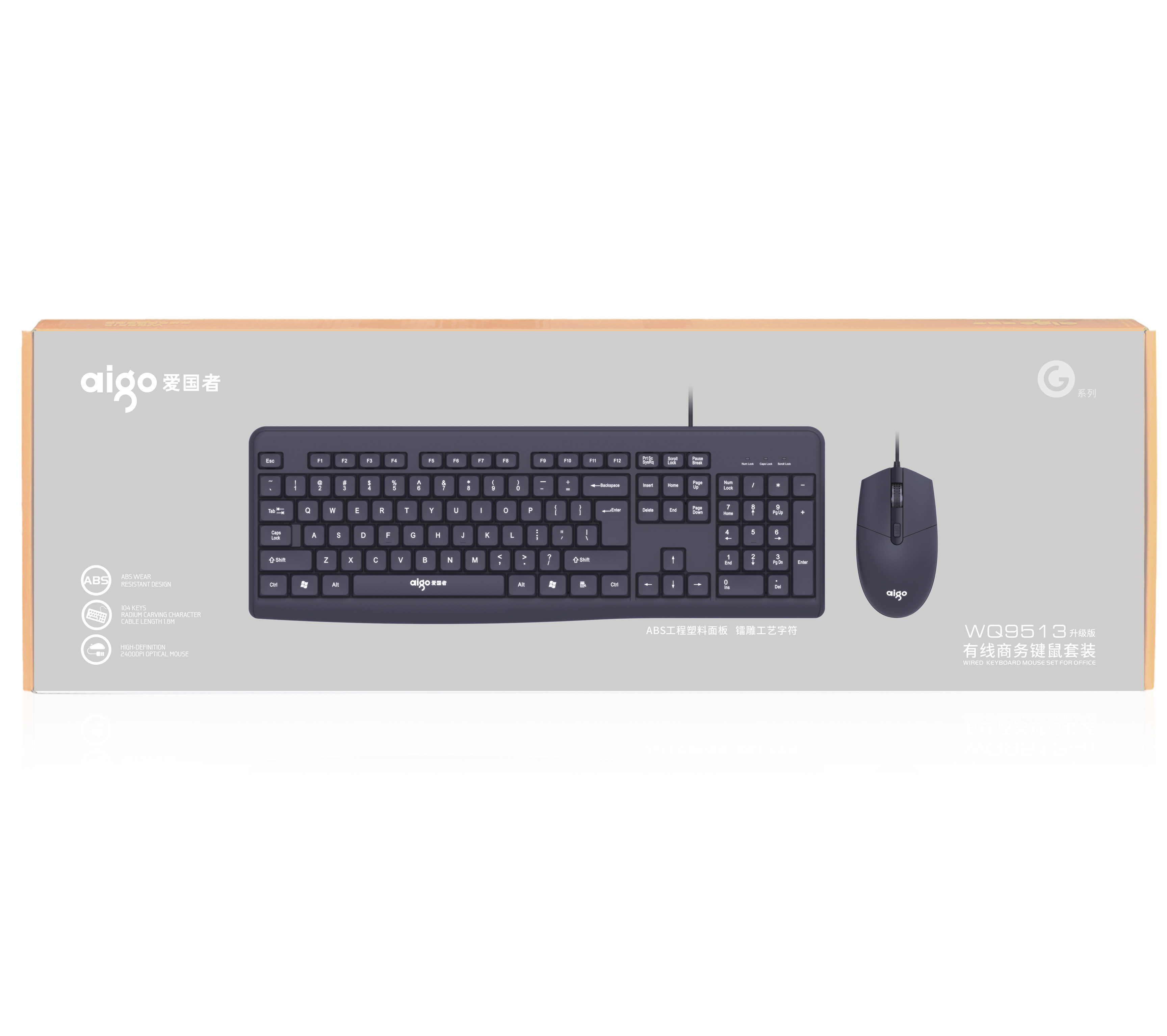 爱国者WQ9513 有线键鼠套装1.8米线长 镭雕字符