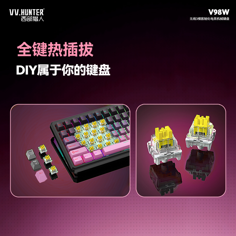 西部猎人【V98W三模黑莓粉】 客制化机械键盘