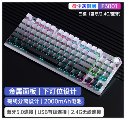 狼蛛3001(青轴渐变灰色)蓝牙三模侧刻机械键盘