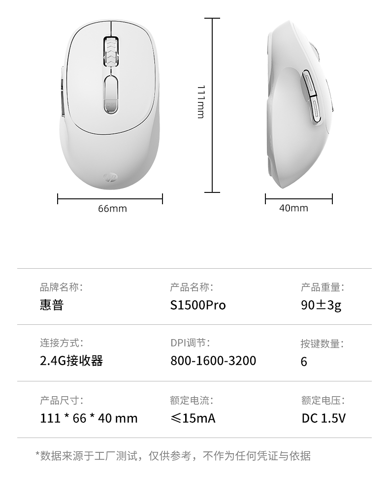 惠普【S1500Pro白色】静音无线鼠标