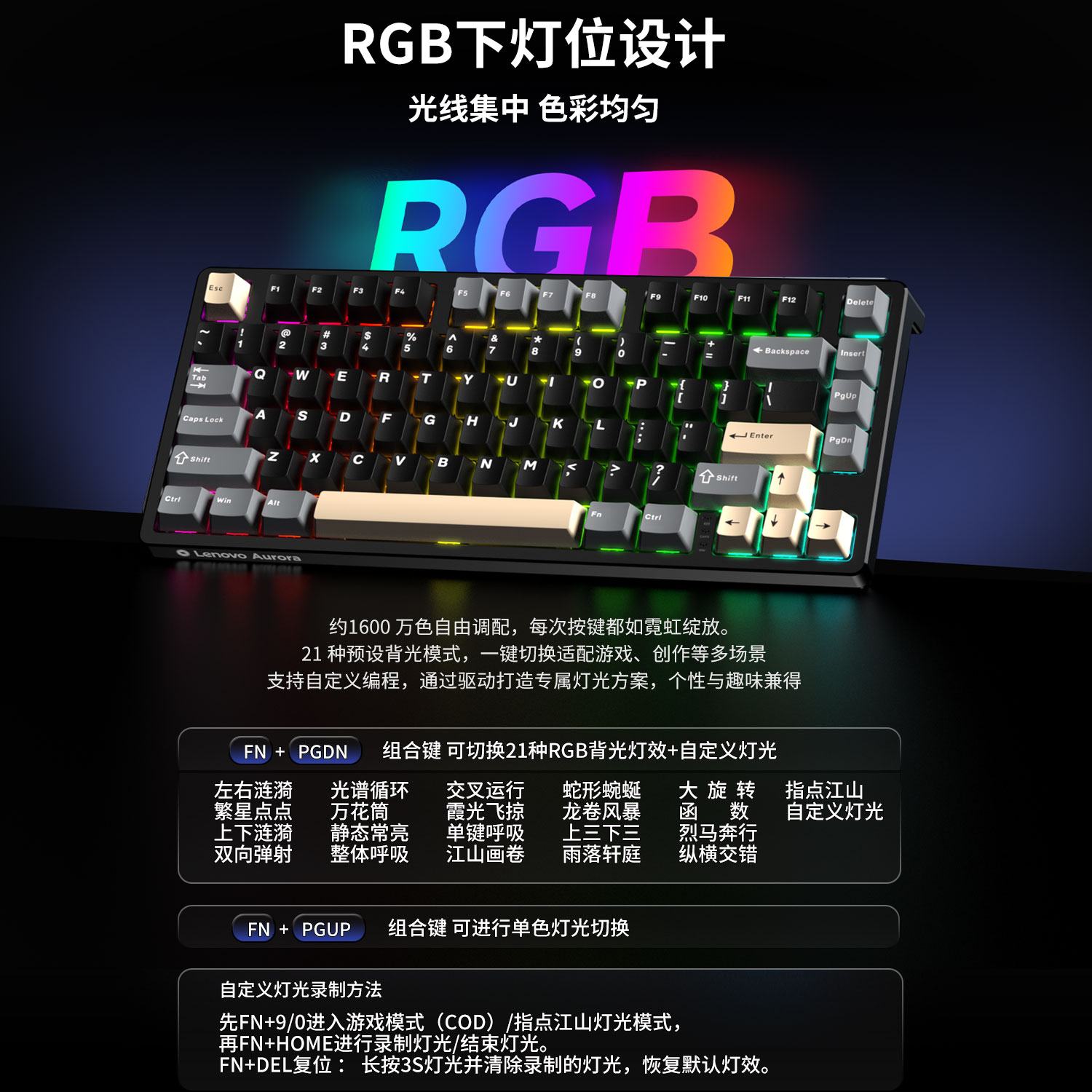 联想GK10三模版80 红轴B款 彩光机械键盘 黑灰