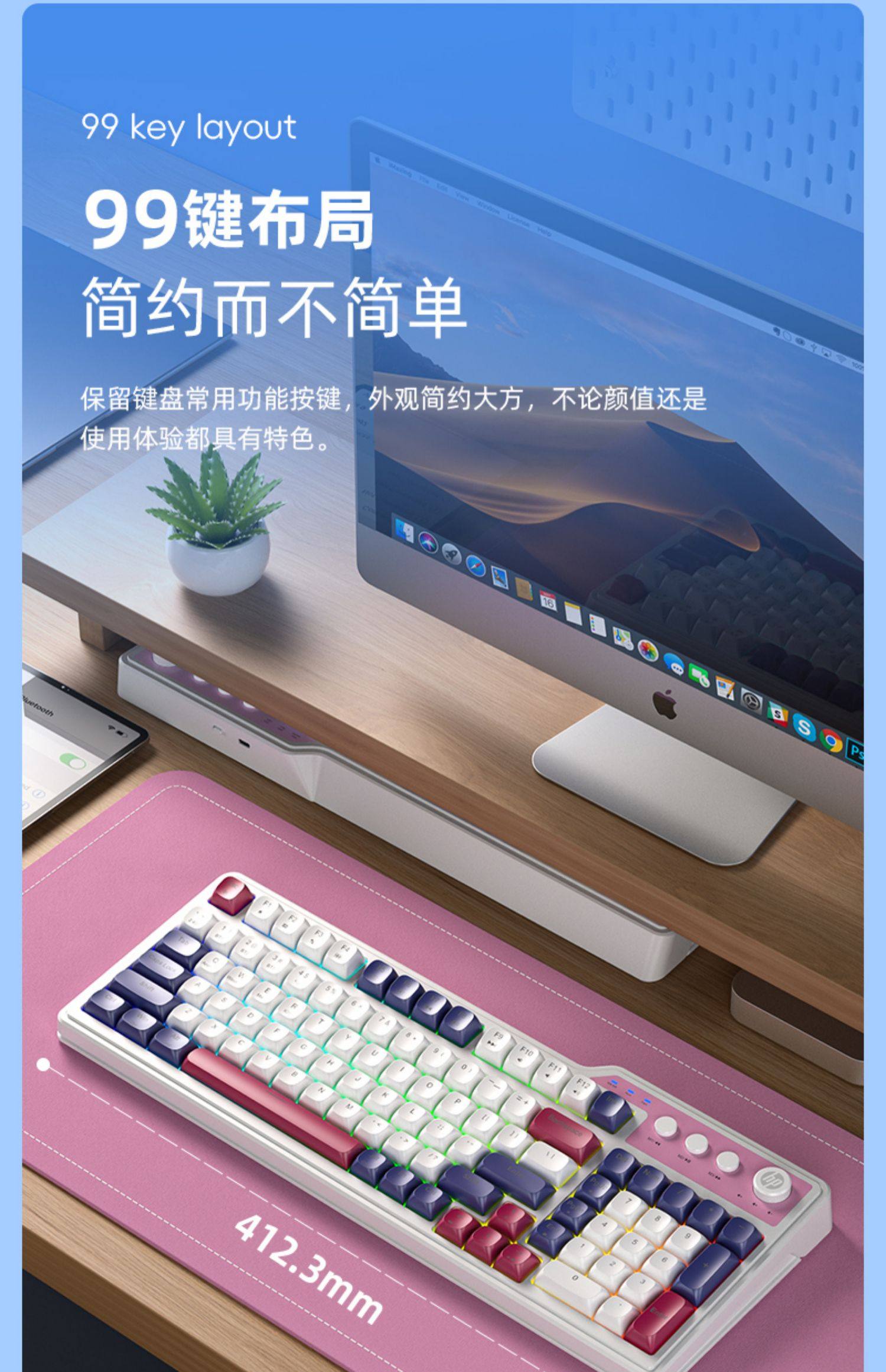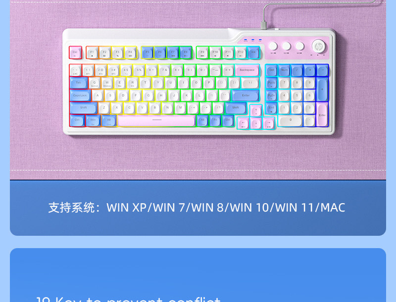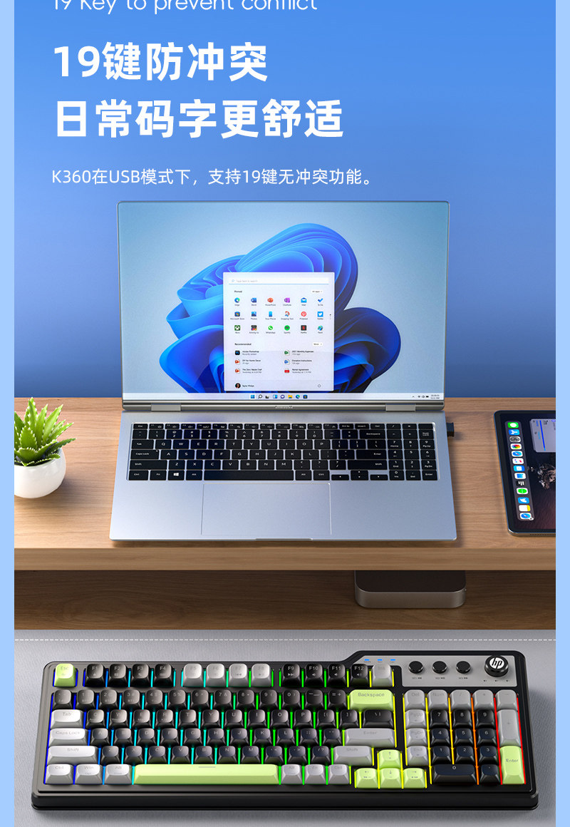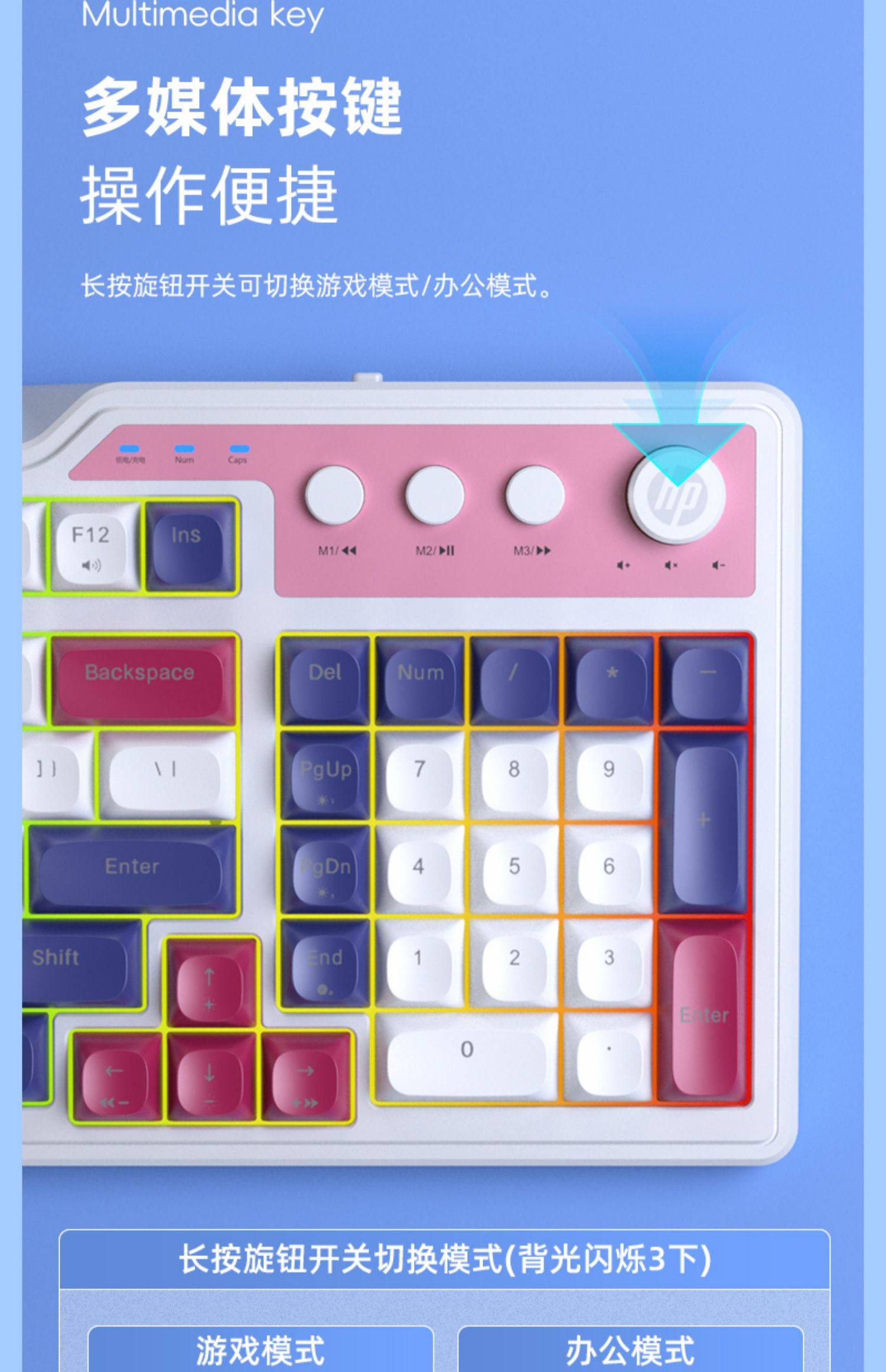 惠普 K360玫白紫 蓝牙三模发光键盘