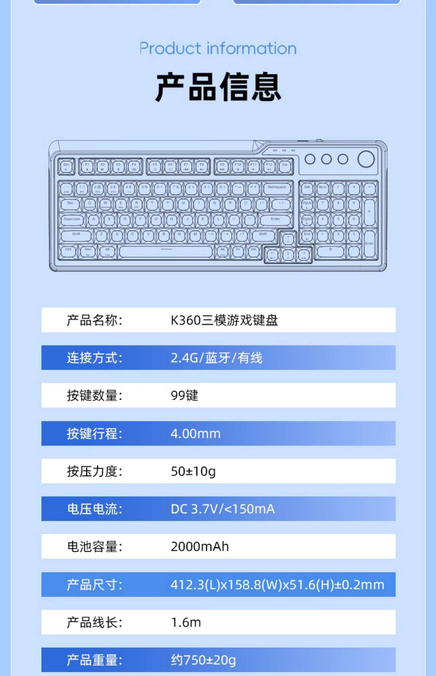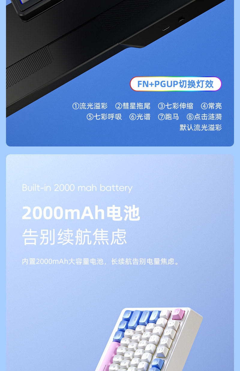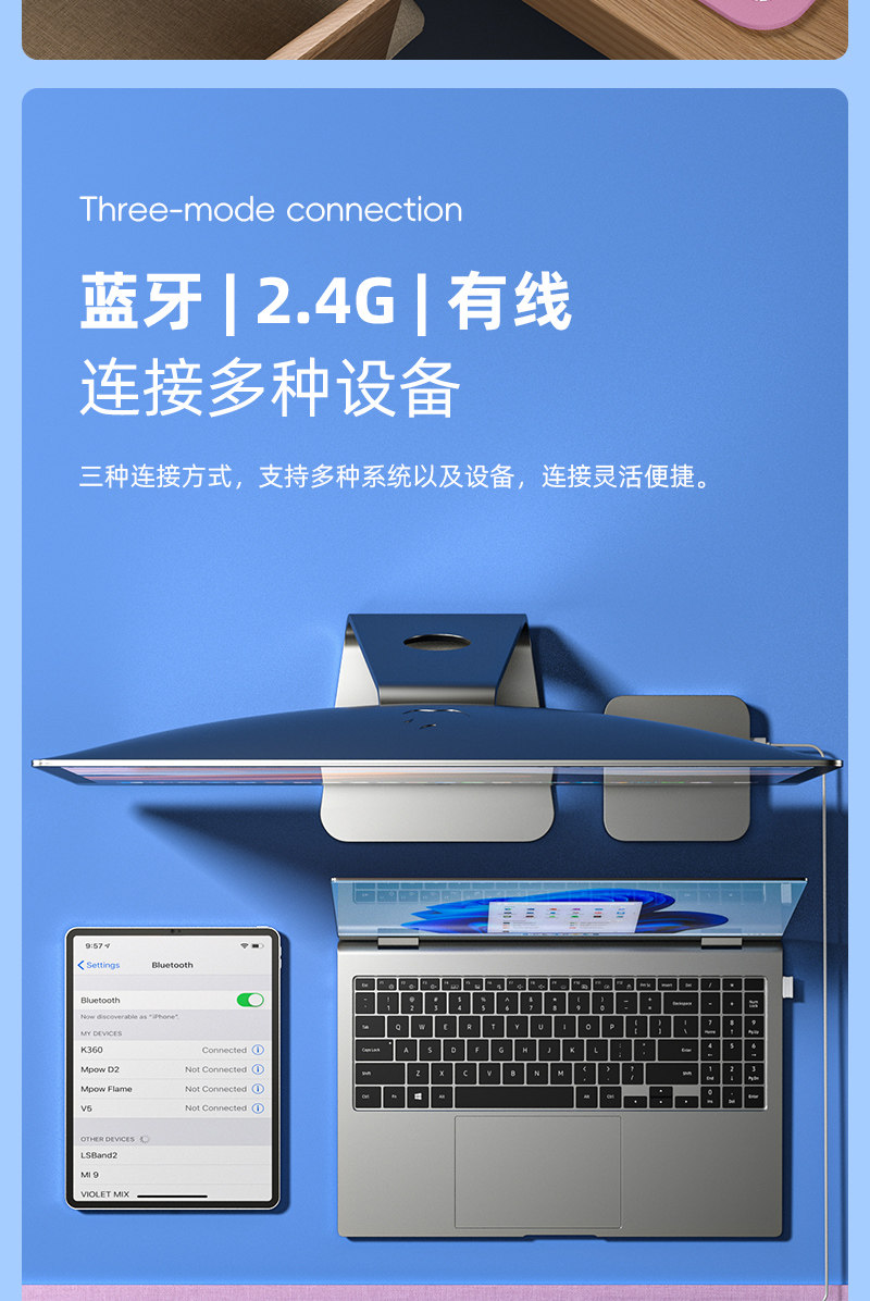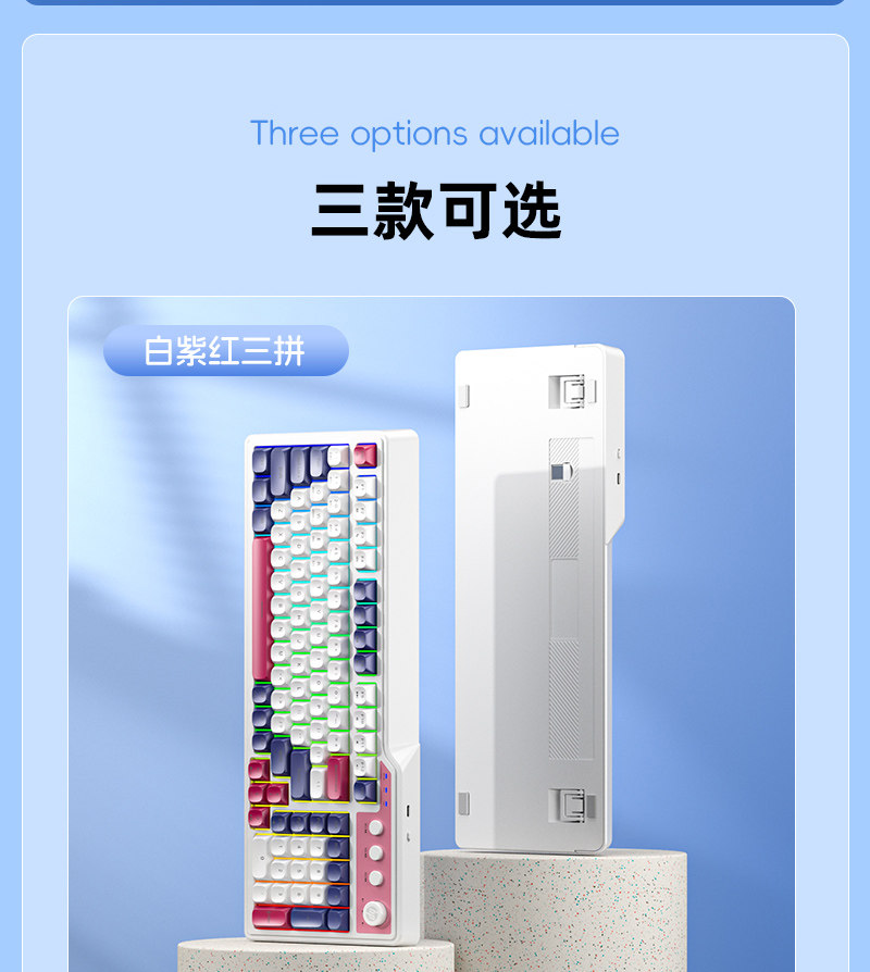 惠普 K360玫白紫 蓝牙三模发光键盘