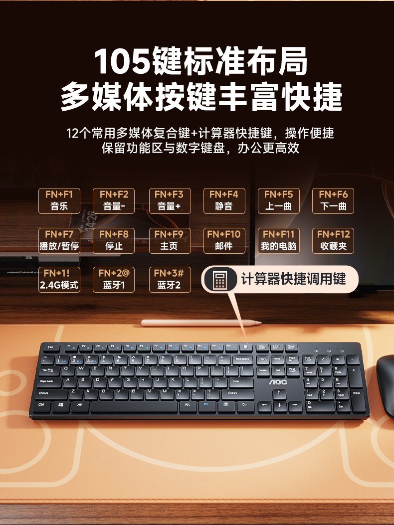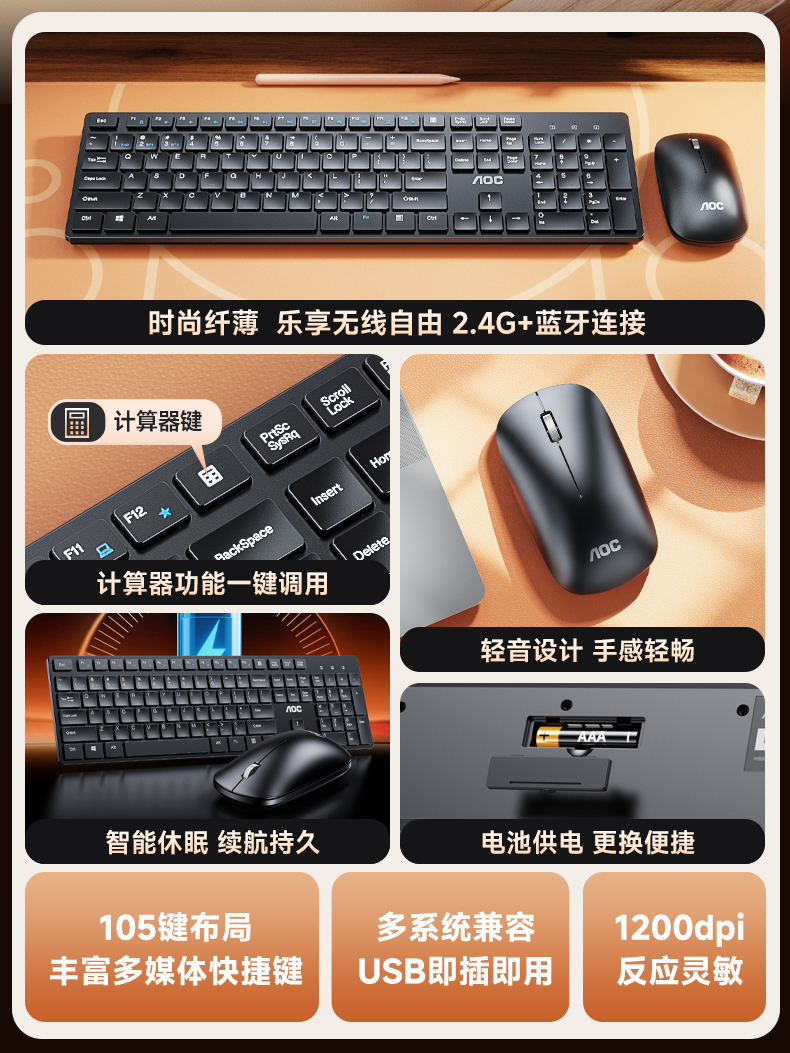 AOC【KM500】蓝牙双模无线套装 静音